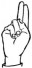 На ћирилици написано ИГЊАТИЈЕ ДЕДИНАЦ састоји се из 15 слова [?]. Исписано ћириличном једноручном азбуком за глувонеме: